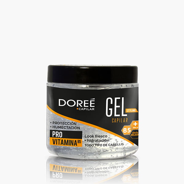 Gel Capilar fortalecido con Provitamina B5. El ácido pantoténico en un componente natural de la constitución del cabello, por lo tanto el D-Panthenol es un acondicionador natural para el mismo. La habilidad de penetrar en la raíz del cabello y en el centro del mismo hace que el cabello se sienta sedoso y suave y a su vez la alta capacidad de humectación del D-Panthenol al incrementar los niveles de Acido pantoténico en el cabello le imparte elasticidad y brillo al mismo. Ideal para todo tipo de peinados. Modela tu cabello dándole brillo y un look húmedo y natural. No deja residuos.